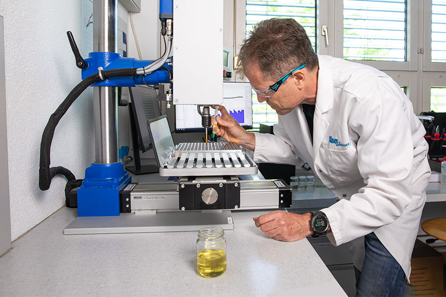 The so-called performance additives ensure that tools last longer (tool life). They also make it possible to machine more quickly at the same wear rate (material removal rate). Both make the process more productive. At Blaser, we analyze the im-pact of additives on the machining process and use these in various com-binations. Based on these results, we formulate products that are then tested for their practical suitability, first internally in our technology center and then in field tests. Knowing when to use which additives to achieve maximum results is immensely valuable for the machining industry.”